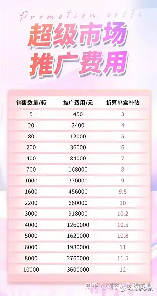 如果你有野心,本身也是非常有资源有实力的业界精英,那么你做到1万箱,培养10个1000箱的团队,那么你能得到的超级市场推广费用为:3600000-10×270000=900000