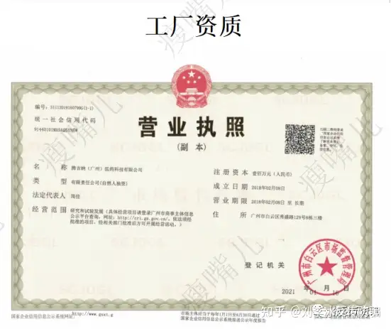 而实际上,从受托方来看,腾吉纳(广州)医药科技有限公司才是其产品的生产厂家,当然从推广者提供的工厂资质也可以看出来。
