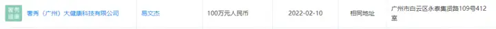 据企查查提供的资料数据,与其注册地址雷同的还有一家公司:奢秀(广州)大健康科技有限公司。