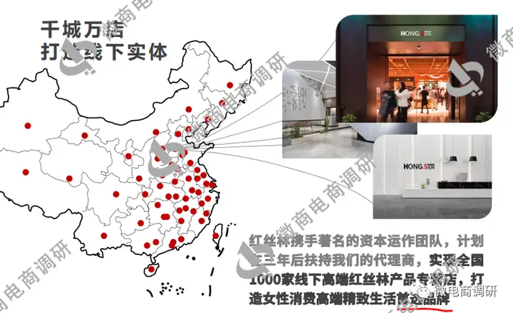 此外,红丝林在宣传资料中也宣称要实现全国1000家线下高端红丝林产品专营店,打造女性消费高端精致生活首选品牌。