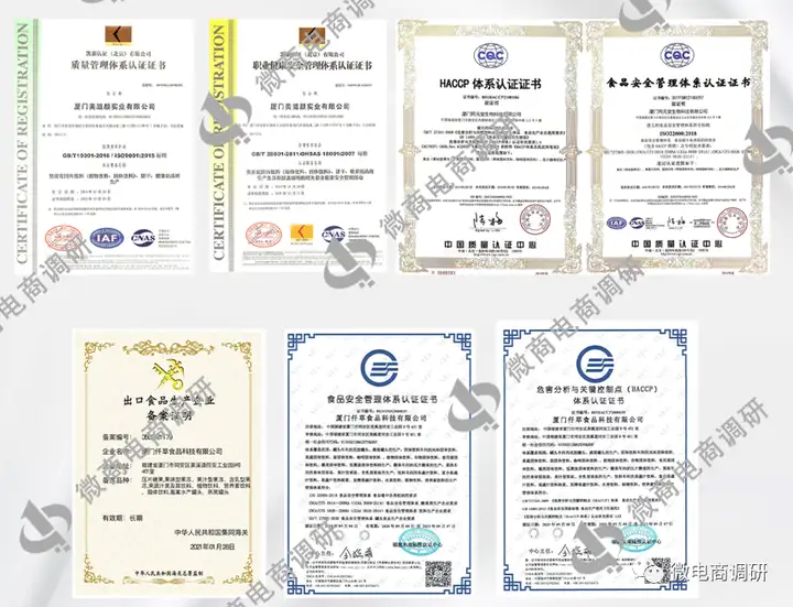 据企查查显示,厦门美滋颜实业有限公司、厦门同元堂生物科技有限公司及厦门仟草食品科技有限公司所属行业均为食品制造业,不涉及保健品相关产品。其中,厦门美滋颜实业有限公司曾因违反广告法及食品生产违法行为被行政处罚。