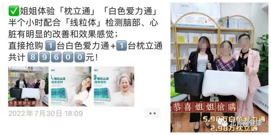 中国质量新闻网调查的艾美美业的几家合作门店,均在售爱力通、枕立通等产品,且均宣传产品具有多种防病治病功效。