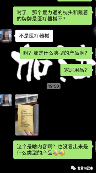 当问及爱力通、枕立通是否为医疗器械,艾美美业广州分公司区域经理张某则明确回复:“不是医疗器械,属于保健养生类型,如果是医疗器械类,属于医院售卖了。”