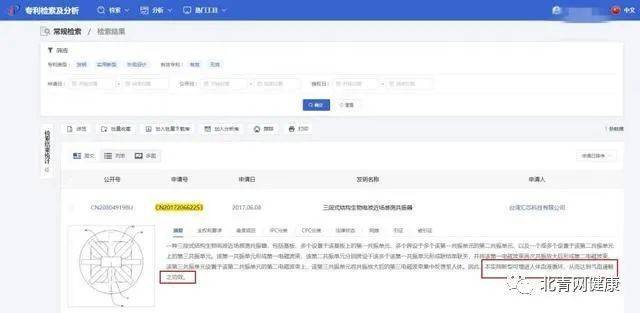 根据爱力通产品信息显示的专利号(ZL201720662253.4),在国家知识产权局网站专利检索页面查询结果显示,该专利名称为三段式结构生物电波近场感测共振器,功能介绍为“可增进人体血液循环,从而达到气血通畅之功效”,但未标注对子宫肌瘤、卵巢囊肿、息肉等疾病有功效。