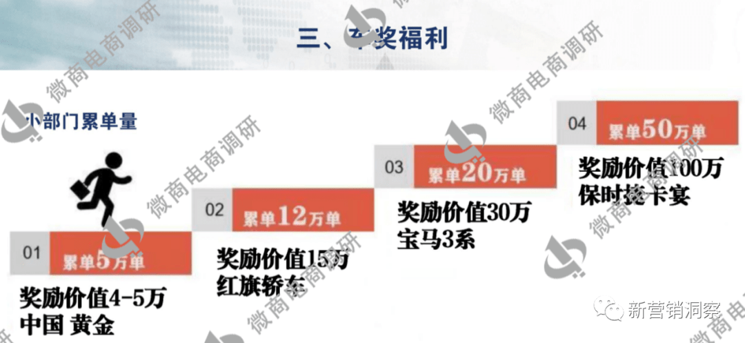 车奖福利也是哈哈晶睛商城奖金制度中十分重要的一部分,累计5万单,奖励价值4到5万元的中国黄金;累计12万单,奖励价值15万的红旗轿车;累计20万单,奖励价值30万的宝马3系;累计50万单,奖励价值100万的保时捷卡宴。