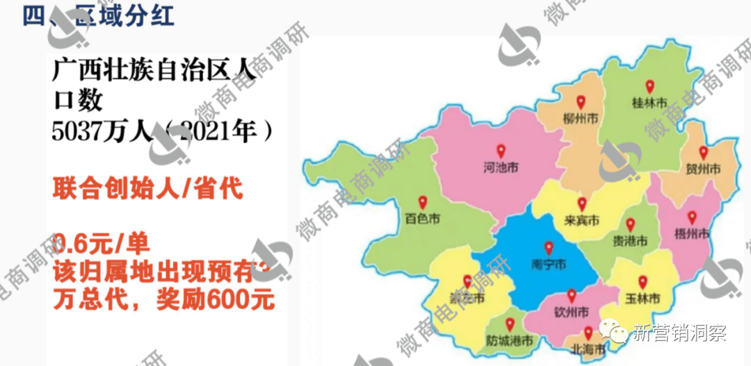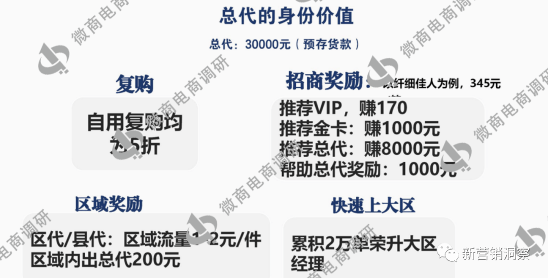 在上图中,总代对应的就是区代/县代的身份,大区经理对应的是市代的身份,联创对应的是省代的身份。