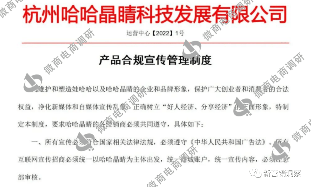值得一提的是,早些时候,哈哈晶睛商城的官方公众号还曾发布过《哈哈晶睛商城产品合规宣传管理制度》,如今看来,颇为讽刺。