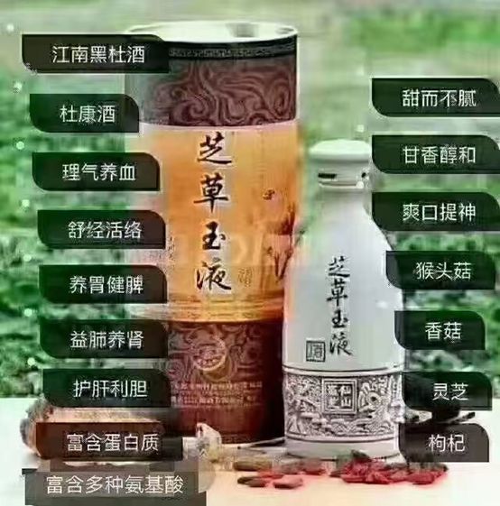 同样这款芝草玉液酒被宣传为具有理气养血、舒经活络、养胃健脾、益肺养肾、护肝利胆的神奇功效。